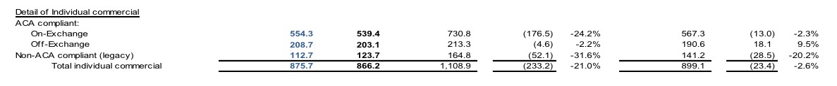 This means that Humana has seen a 24% drop in their ACA exchange enrollment year over year, along with a slight drop in their off-exchange ACA compliant enrollment:
