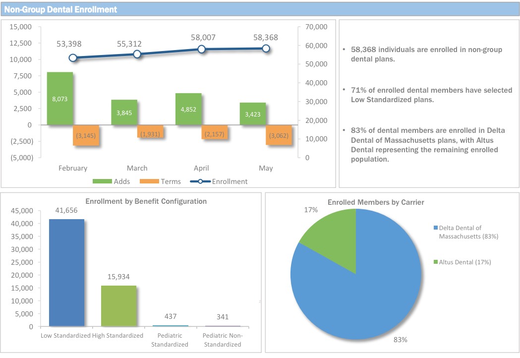 Executive Director’s Report: Mr. Gutierrez began the meeting by comparing current Health Connector enrollment to enrollment last year. He stated that currently, there are approximately 208,000 members enrolled in Qualified Health Plans (QHPs), compared to 124,000 QHP enrollees at this time last year. He noted that the ConnectorCare population has nearly doubled in size in that time. He added that unsubsidized and Advance Premium Tax Credit (APTC)-only membership increased from 44,482 last year to 51,695 this year and that as of March 1, dental membership was at approximately 55,000, up from about 30,000 last year.