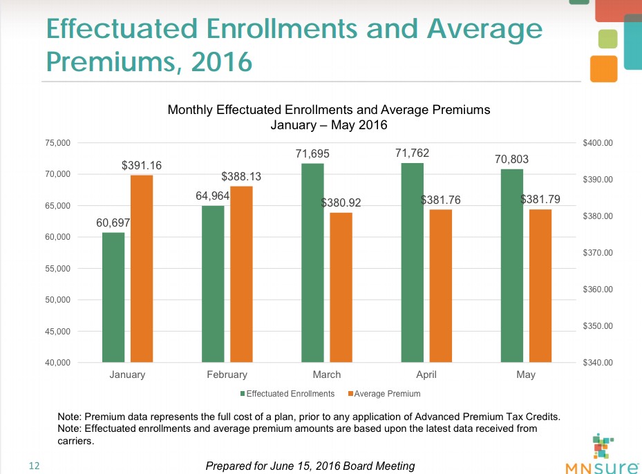 • 4/18/16 - 5/22/16: 91,868(+1,172, or 33/day); 64,040 MNcare; 195,295 Medicaid