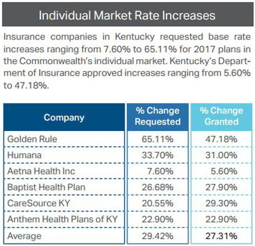 Kentucky: *Approved* avg. 2017 rate hikes: 24.5% (vs. 23.6% requested)