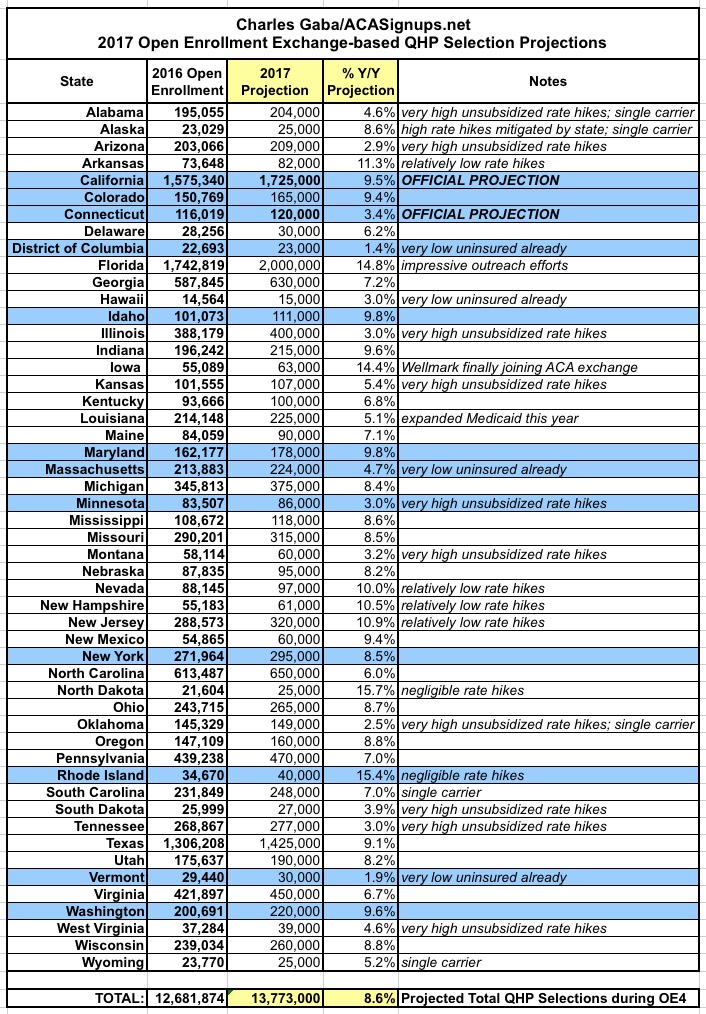 - Is there an official (or semi-official) QHP projection for that state from their ACA exchange?