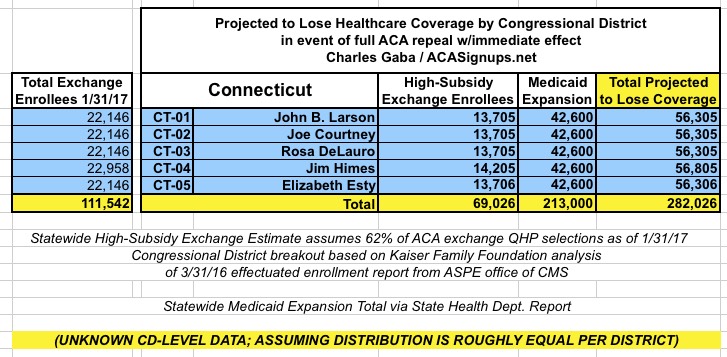 UPDATE 3/15/17: CMS has released the official 2017 Open Enrollment Report, which includes the official ACA exchange policy selection numbers as of 1/31/17, along with related demographic information. I've started the process of revising all 50 states with updated data, but this will take some time to complete. It's important to understand that most counties/congressional districts won't change by much, but I'd still prefer to have the data as up to date and accurate as possible.
