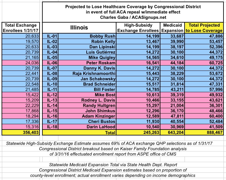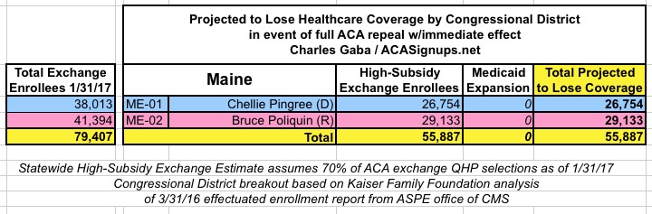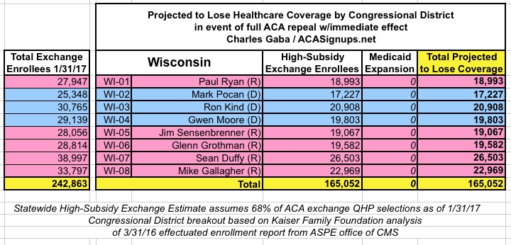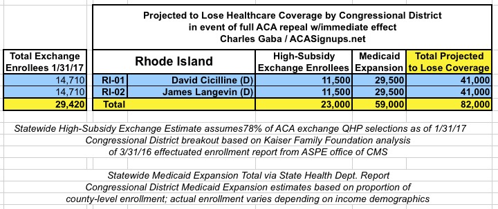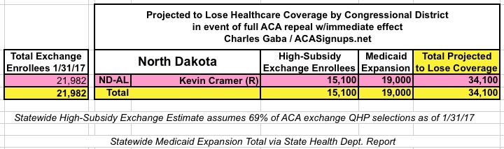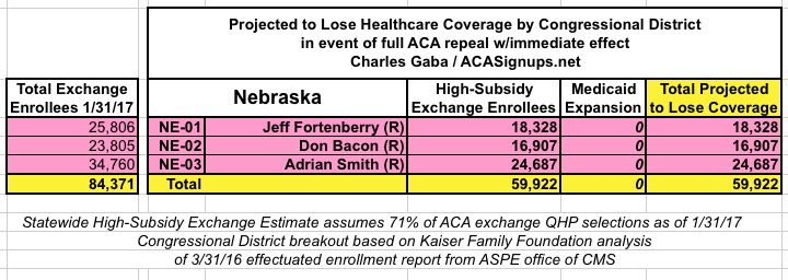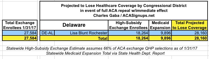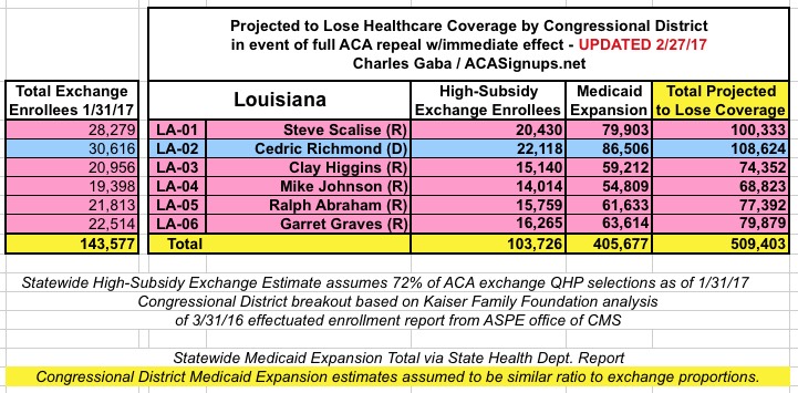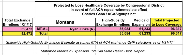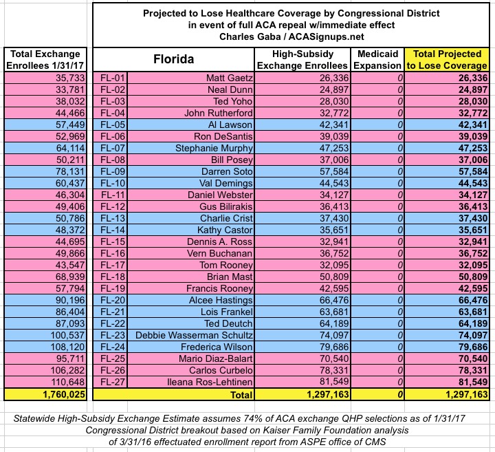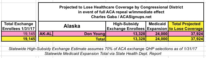 MAJOR UPDATE 3/22/17: As I've noted repeatedly, my estimates of how many people are at risk of losing their coverage has always been based on the assumption of full repeal with immediate effect and, most importantly, no replacement healthcare policy whatsoever. I had to do it this way at first because there was no Republican replacement plan available until a couple of weeks ago. Then, when the AHCA plan was released, I didn't have the time or expertise to properly overhaul my projections accordingly.