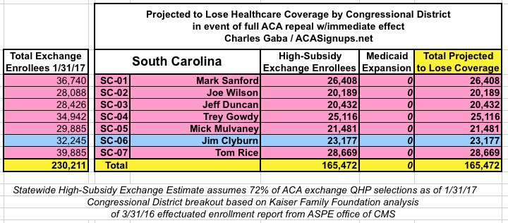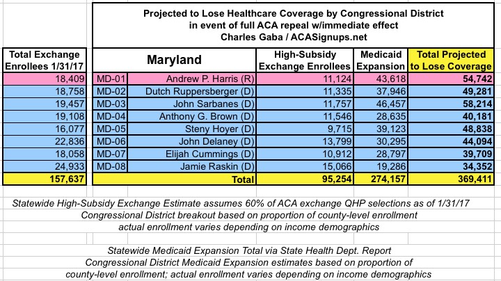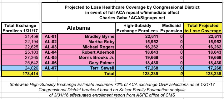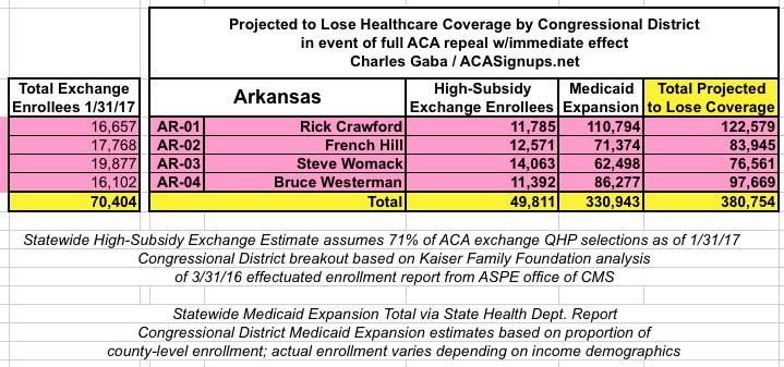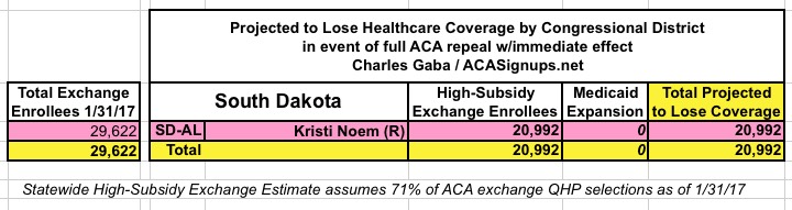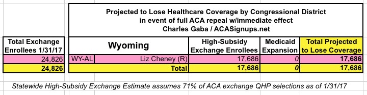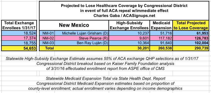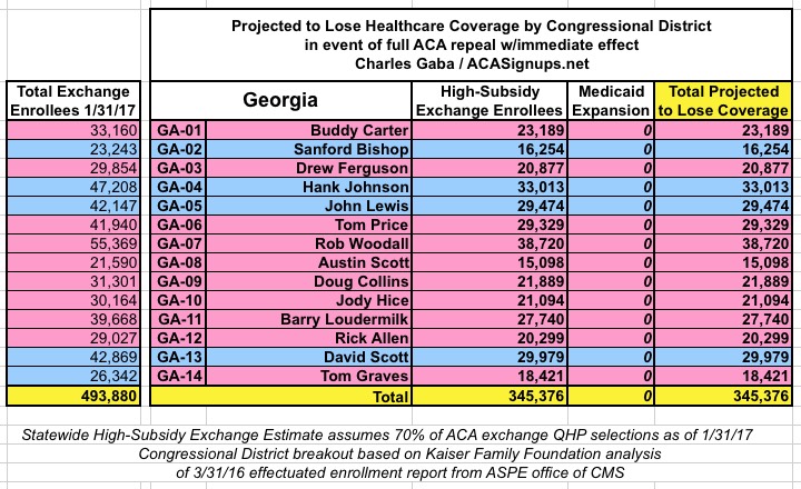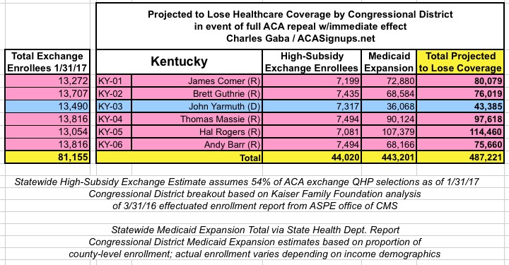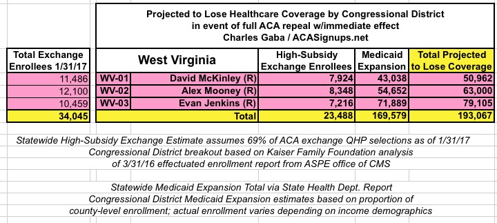 In addition, the KFF analysis doesn't include Medicaid expansion enrollees in those zip codes/Congressional Districts, so it's much easier to run estimates for the states which didn't expand Medicaid under the ACA (plus states with only a single district, duh!)