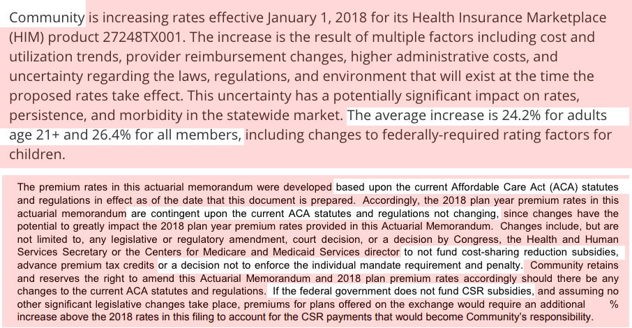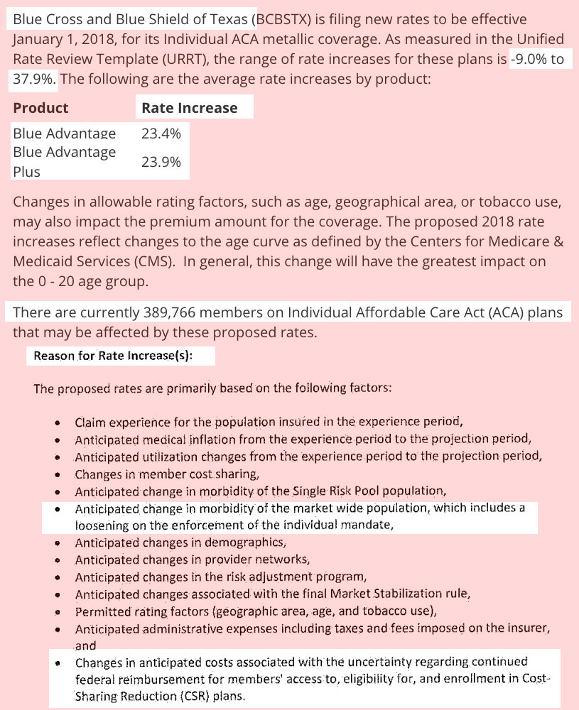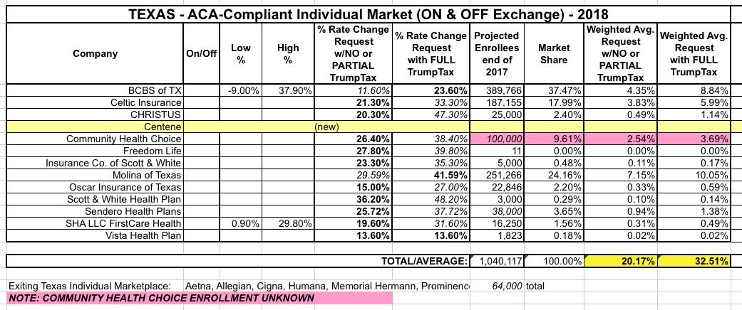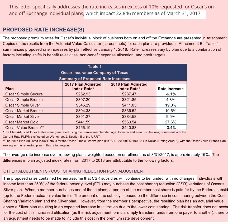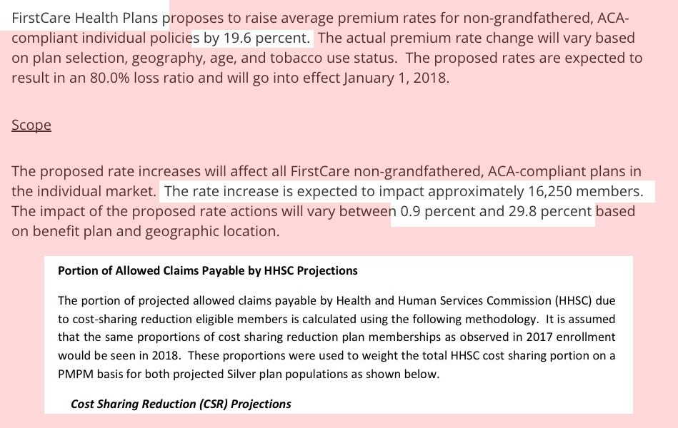 With those caveats in mind, it looks like the Lonestar State is seeking 20.2% average unsubsidized rate hikes if CSR payments are made, or 32.5% increases if they aren't: