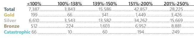 The good news is that unlike the Urban Institute report, CMS's data includes every exchange-based policy: EVERY Silver and Gold plan, as well as every Bronze plan and even the couple hundred thousand who signed up for Catastrophic or Platinum policies.