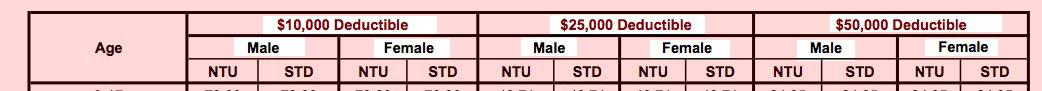 Oh. I see. Yes, you can indeed get a short-term plan for as little as $38/month...with a $50,000 deductible. And of course if you're a woman, you'll have to pay 24-34% more.