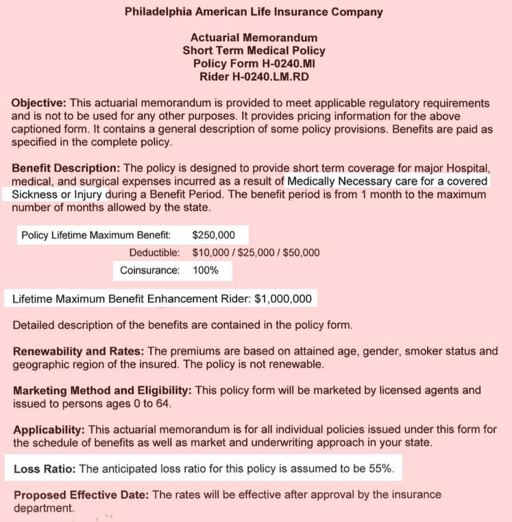 One more thing: Did you notice the loss ratios for both the Philadelphia and Priority Health short-term plans? 55% and 56% on average.