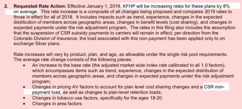 Colorado: Preliminary 2019 #ACA rate hike request: 6.0% INCREASE instead of a ~5.1% DECREASE w/out sabotage
