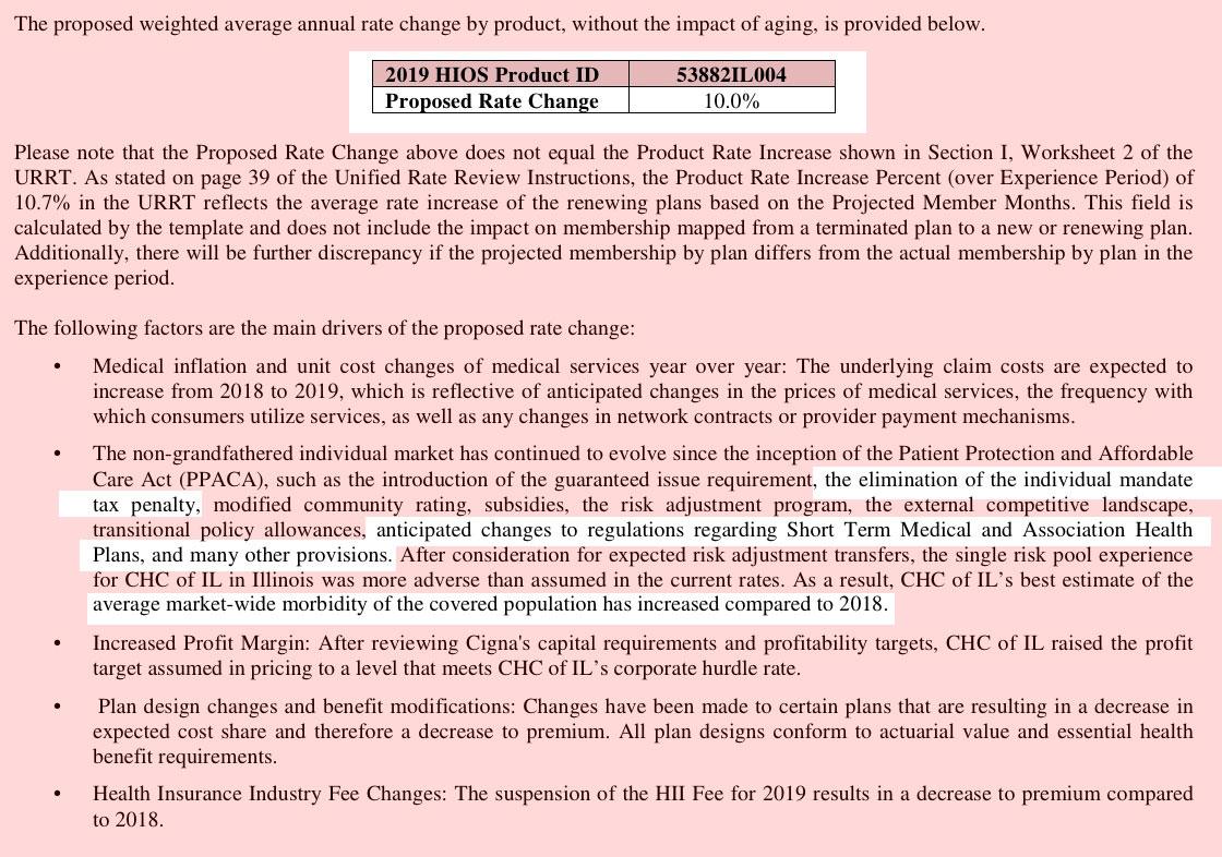 Illinois: Preliminary 2019 rate changes: Nearly FLAT, but *would* likely DROP ~12% w/out #ACASabotage