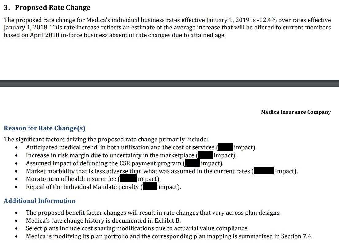 As you can see in the screen shots below, several of the carriers laid out exactly how much #ACASabotage is causing rates to increase next year (or at least how much it's cancelling out the price reductions). Interestingly, PreferredOne claims they don't foresee any impact...but again, they only have 300 enrollees to begin with, so that's not even a rounding error.