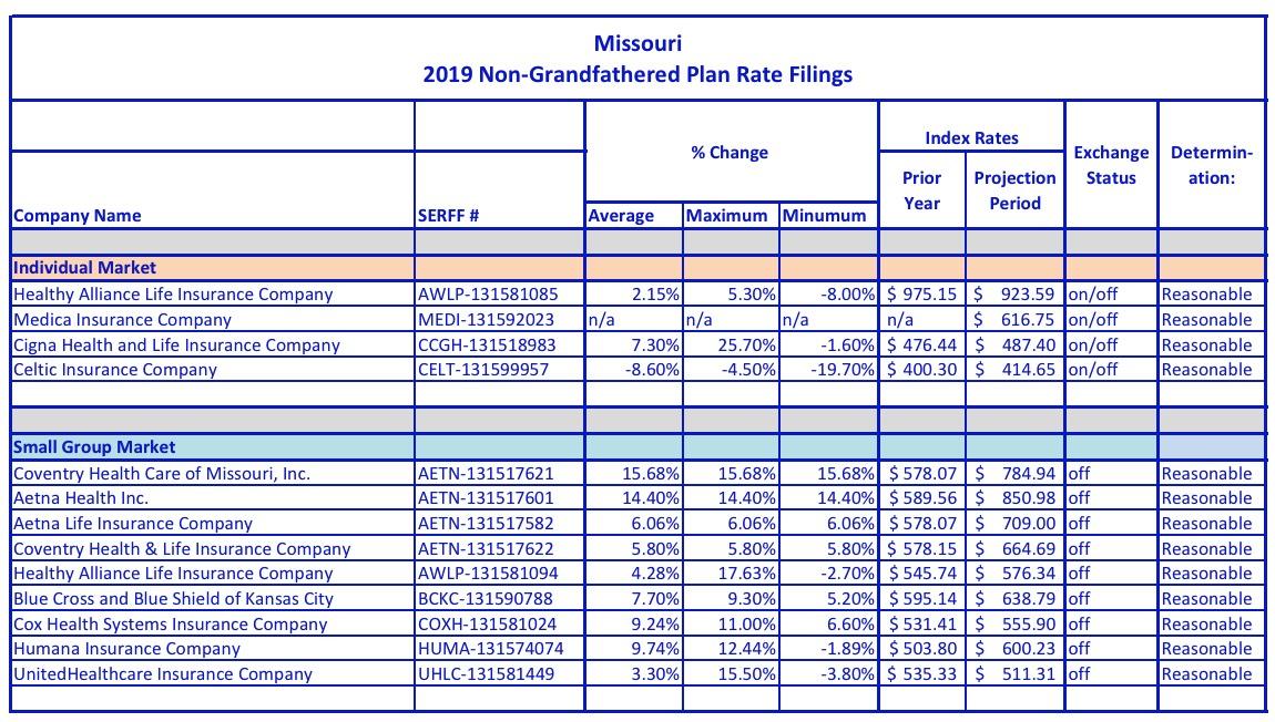2019 Rate Hike Project Wrap-up: FINAL/APPROVED rate changes for Missouri & New Hampshire