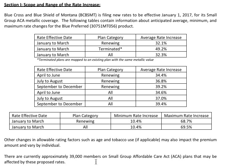 As for the actual requested rate hikes...ouch. BCBS is seeking a whopping 62% average increase, and since they own 70% of the individual market, that means a statewide weighted average of right around 50% even. Things aren't as ugly on the small group market, but that 27.5% average is still pretty ugly.