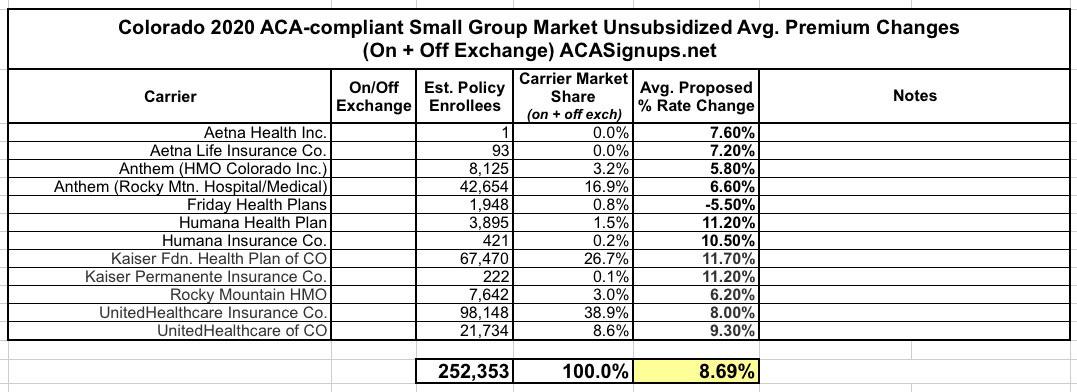 The information below on the companies, plans and requested premium changes is preliminary, and only reflects what the companies have requested, not the final approved plans for 2020. The final, approved plans for 2020 will be made available later this year in late summer / early fall. All of the preliminary 2020 facts and figures are available on the Division's webpage for Health Insurance Plan Filings. Colorado consumers can file formal comments on these plans through August 5.