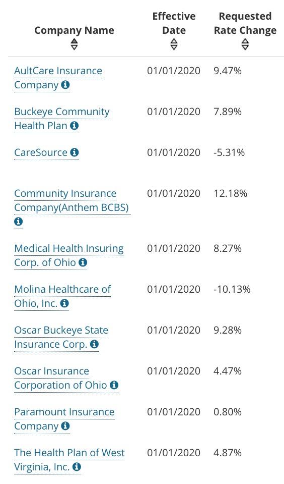 The good news about the Ohio Insurnace Dept. is that they make it easy to find out which insurance carriers are participating on the ACA market and what the overall, weighted premium change is statewide.