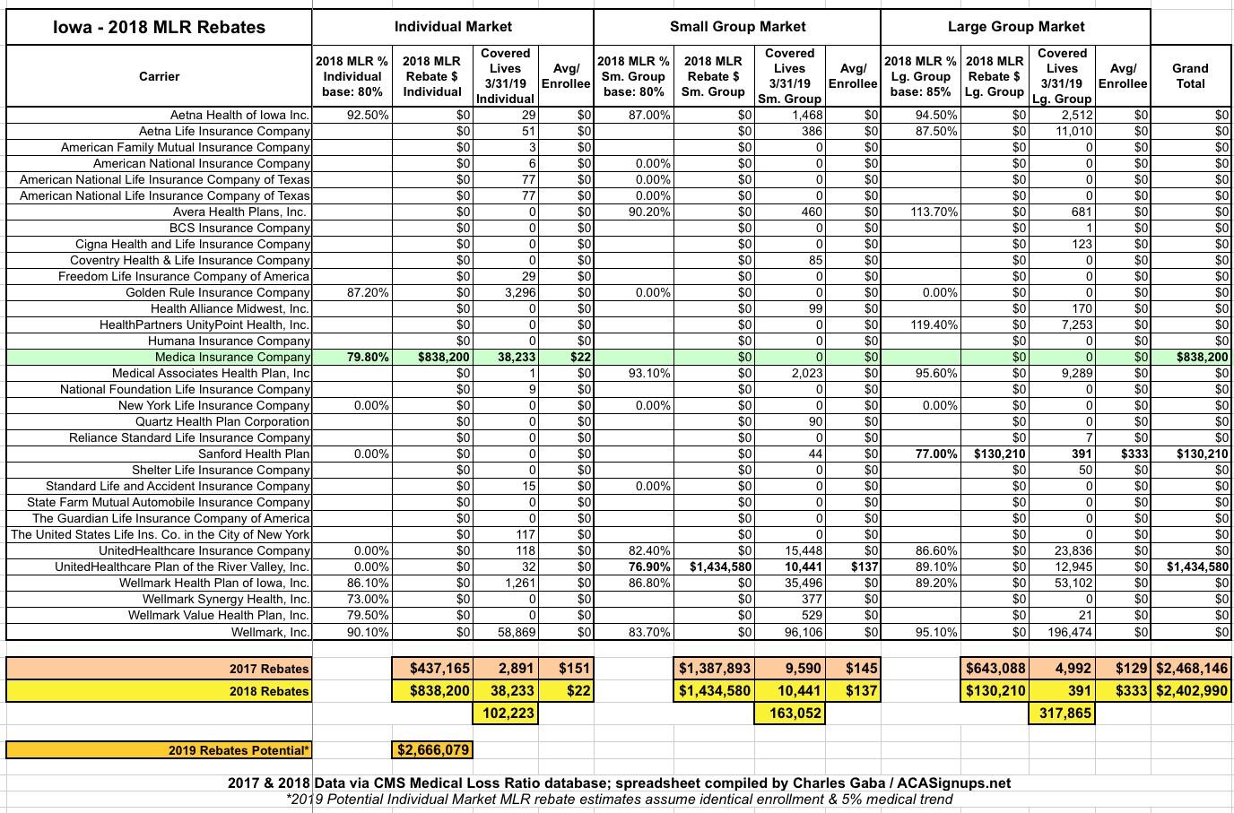 Iowa: $2.4 million in MLR rebate payments going to 49,000 enrollees