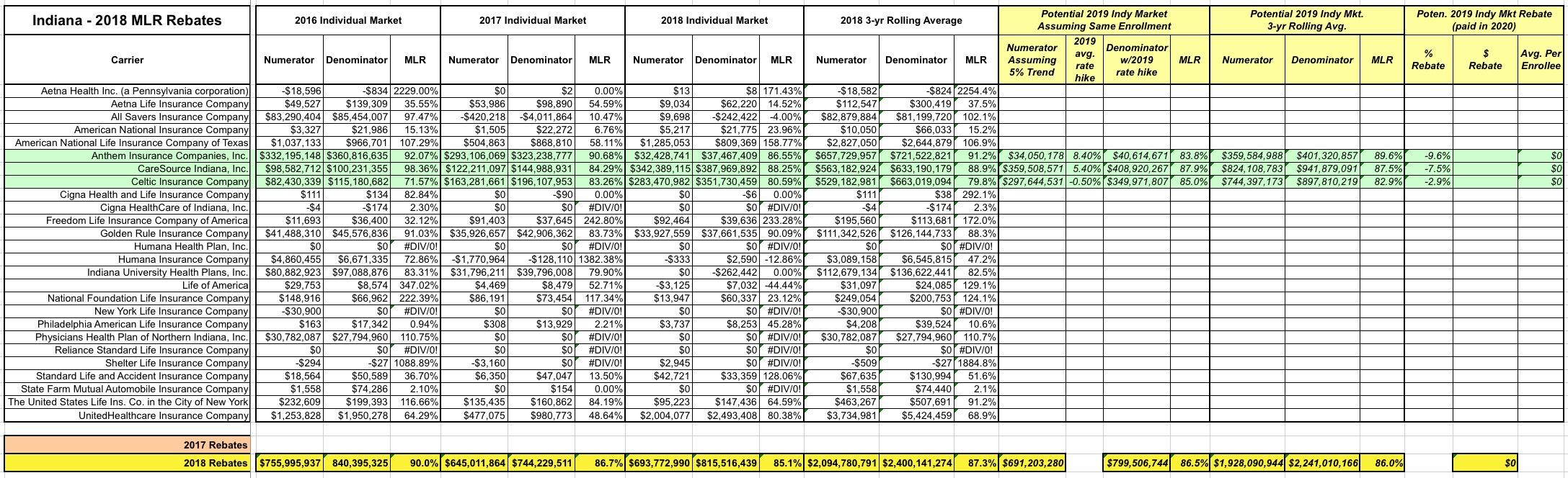 Exclusive!* Indiana: $5.3 million in 2018 MLR rebate payments