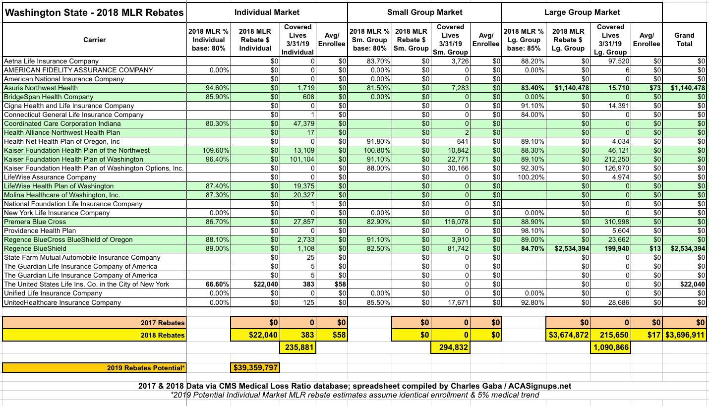 Washington State: Not much in the way of MLR rebates this year, but NEXT year could be big