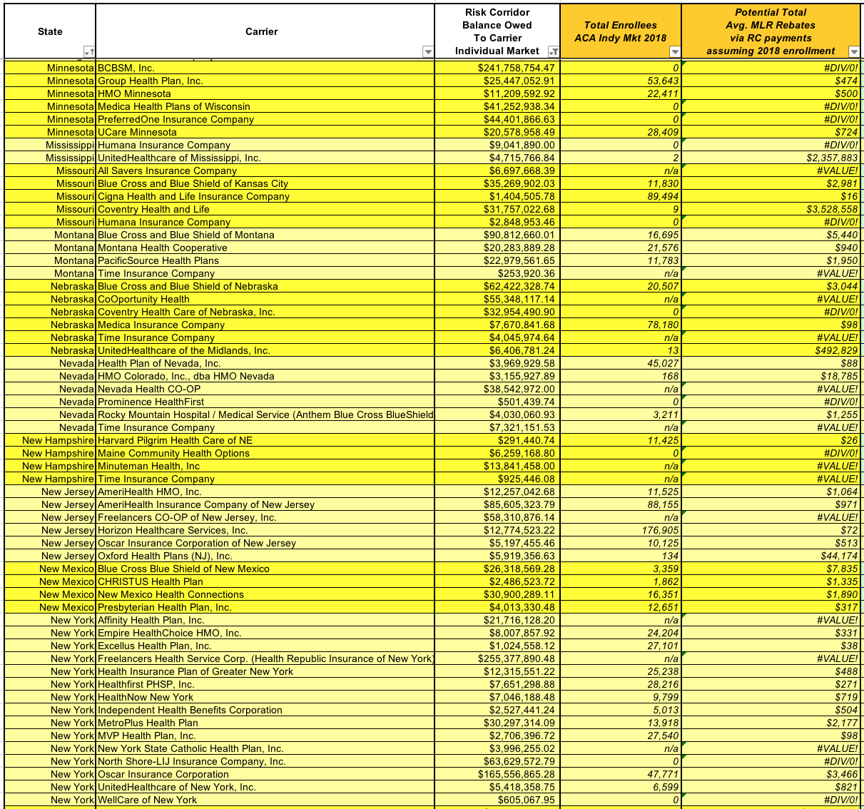 But what about a carrier which mostly dropped out of the individual market but not quite? I'm talking about carriers which are owed millions of dollars in Risk Corridor payments but only have a small number of actual individual market policyholders to divide it up amongst?