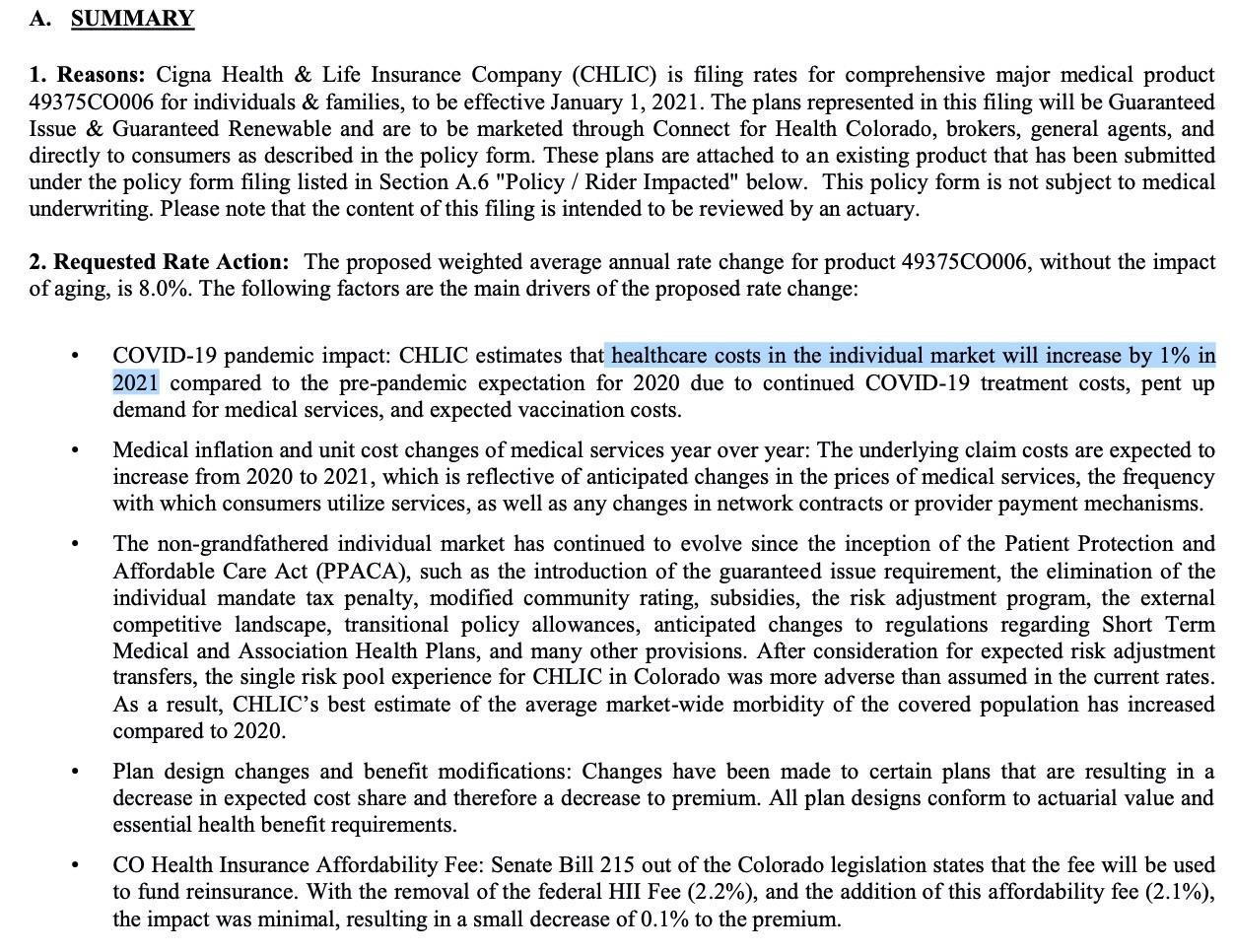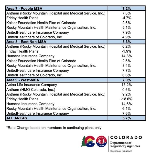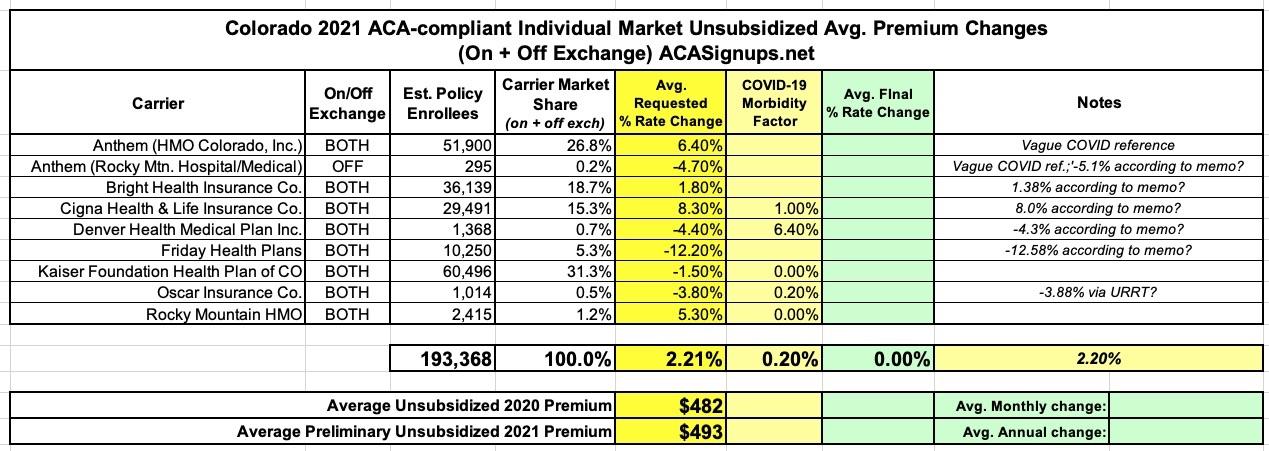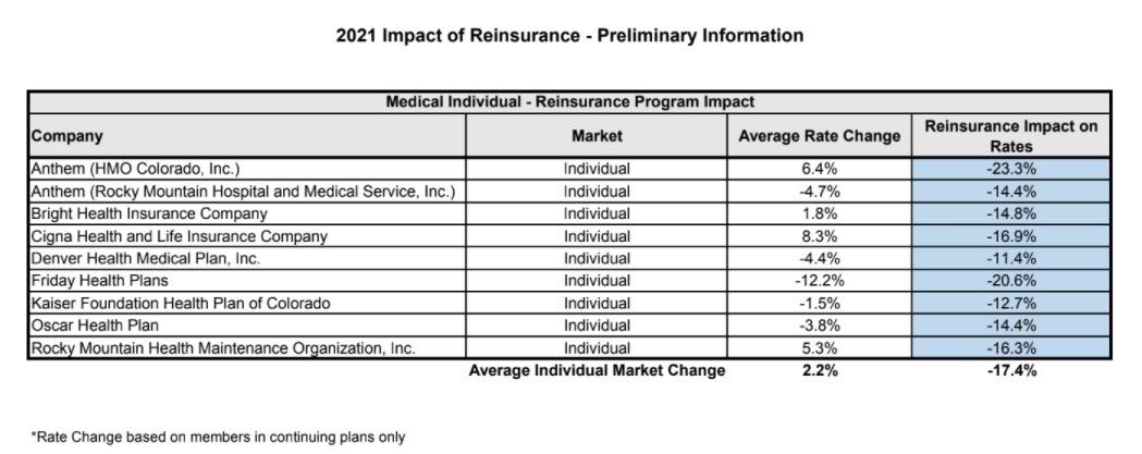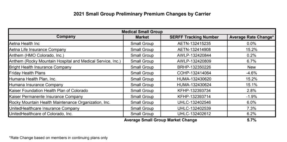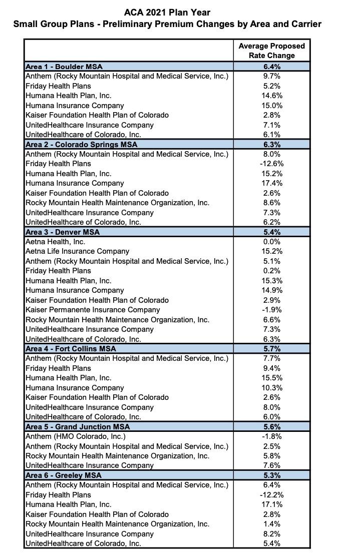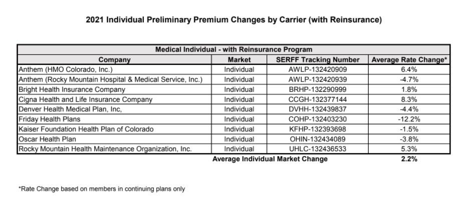 The Colorado Dept. of Insurance has released the state's preliminary rate filings for 2021 individual & small group market policies yesterday.