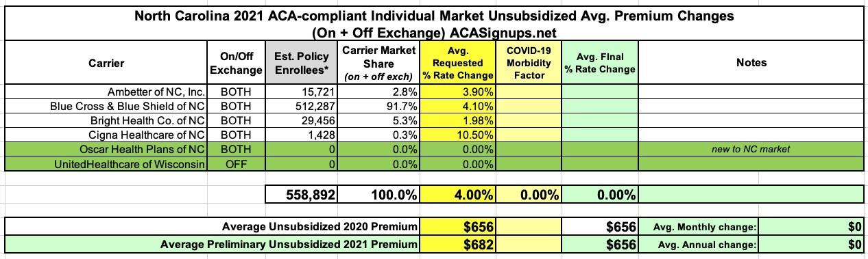 North Carolina: Preliminary avg. 2021 #ACA premiums: +4.0% indy market, +6.8% sm. group