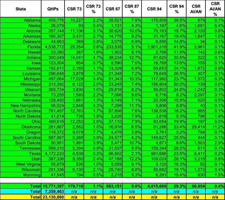 On the flip side, Maryland, New York, New Mexico and Connecticut saw small to significant increases in those CSR eligible, interestingly, although the raw numbers are still nominal (27,000 across all four).
