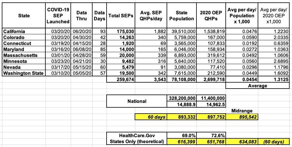 - Some states separated out "normal" SEP enrollments from the COVID-specific SEP enrollments...while others lumped them together