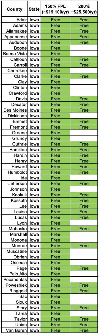 NOTE: It's important to keep in mind that many enrollees earning less than 200% FPL (roughly $25,000/year if you're single or $52,000/year for a famly of four) are probably still better off enrolling in a high-CSR Silver plan than a Gold plan even at $0/mo in premiums due to the signficant reductions in deductibles and other cost sharing...but if you live in the counties below, are in that income range and are looking to pay nothing per month above other considerations, you should strongly consider going for the Gold.