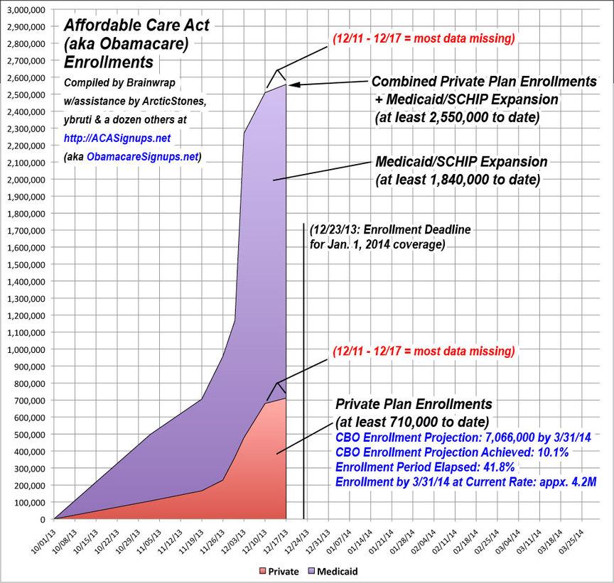 OK, I'm not sure how much this particular milestone should be crowed about considering that over 40% of the enrollment period has elapsed, but new actual numbers have been rather thin over the weekend, so I figured I'd call some attention to it.