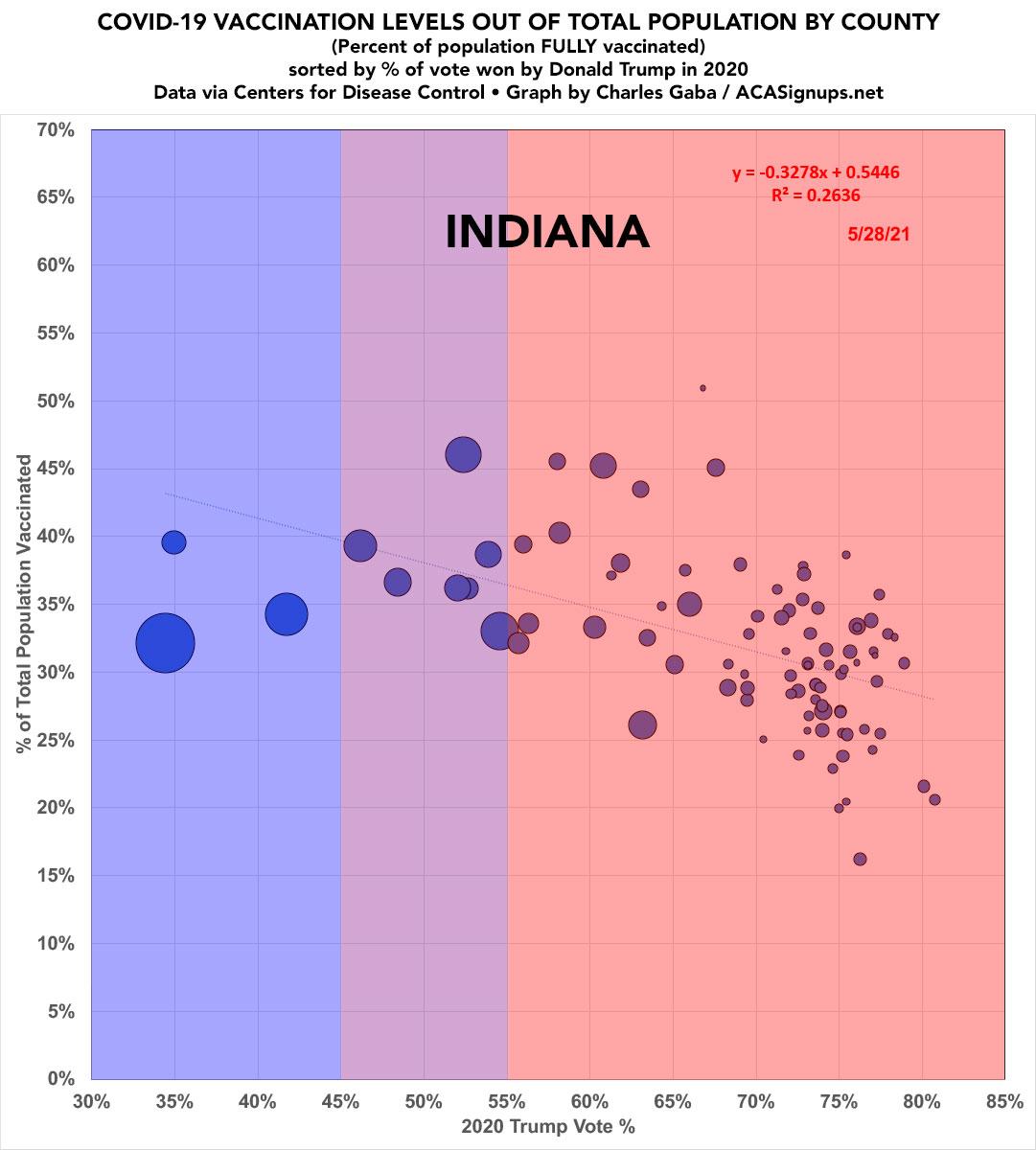 Indiana: #COVID19 vaccination rates by county & partisan lean