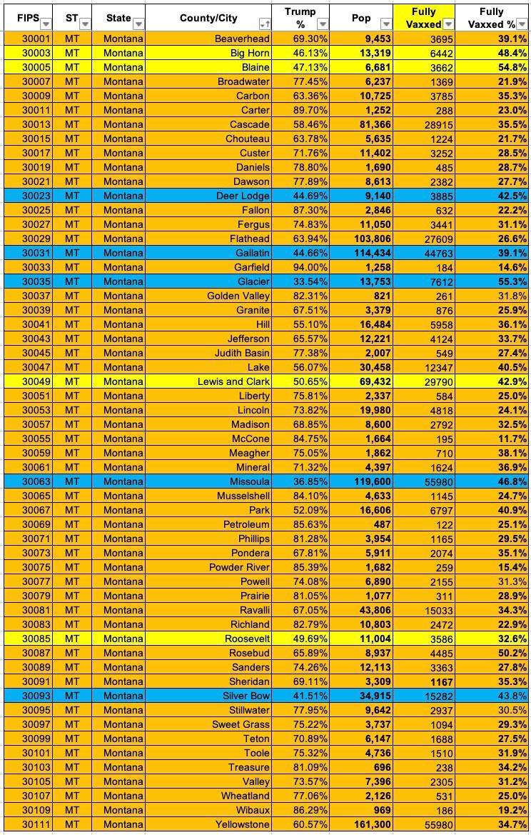 Note: The CDC lists ~19,000 Montana residents (4.9% of the total fully vaccinated) whose county of residence is unknown.