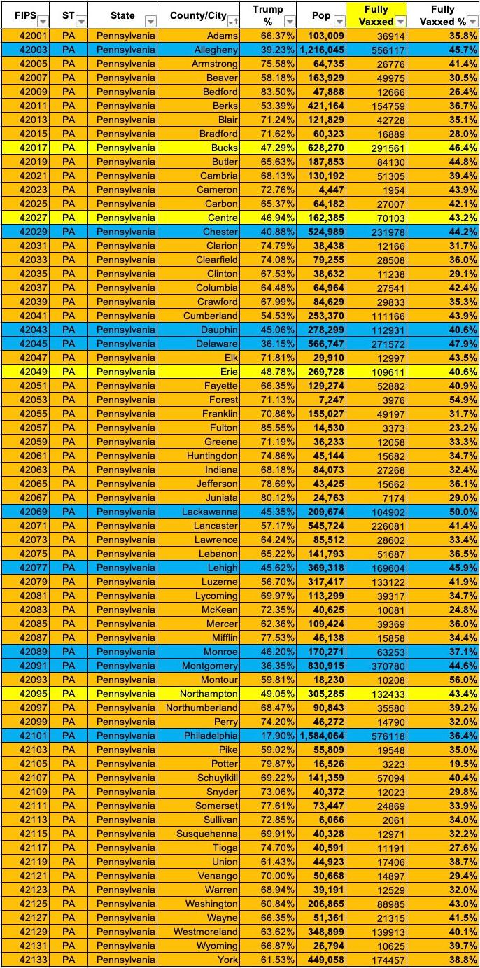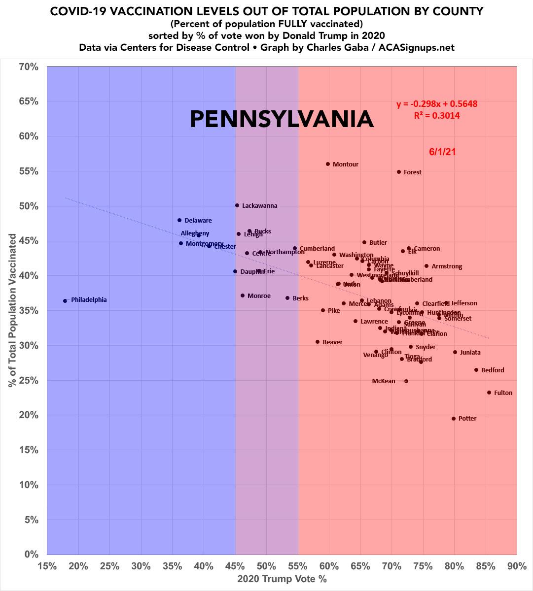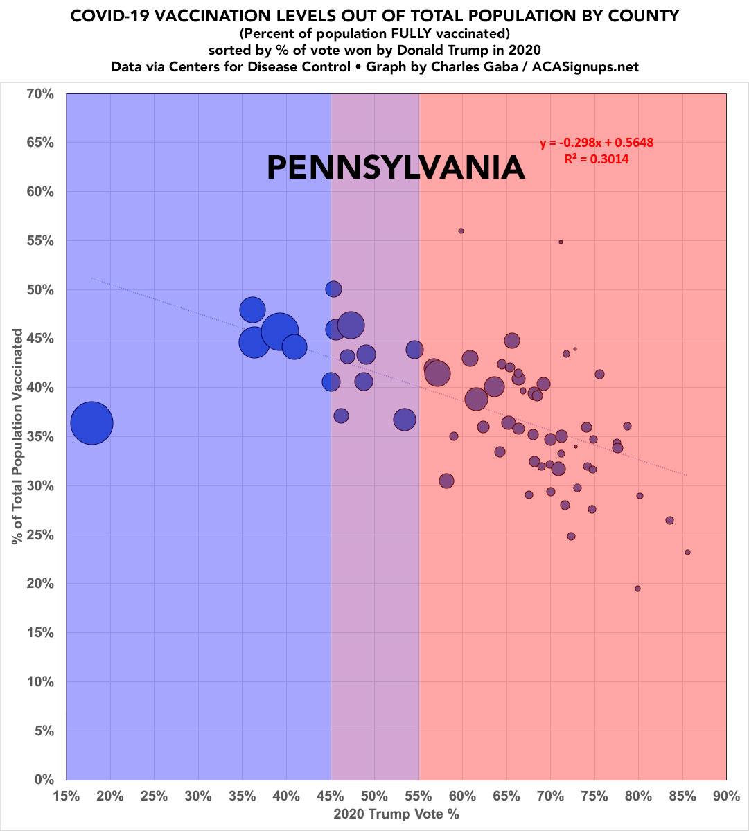 Updated: Pennsylvania: #COVID19 vaccination rates by county & partisan lean
