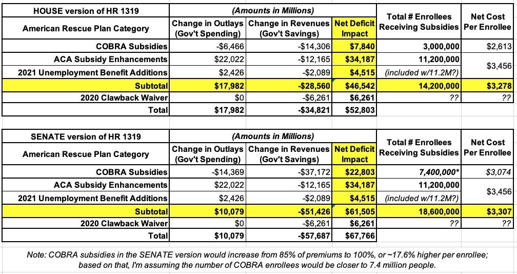 As I explained in painstaking detail, the actual amount being spent per person is more like $3,300 apiece for anywhere from 14.2 million to 18.6 million people depending on whether you're going by the House or Senate CBO score (and the final version of the ARP was the Senate version).