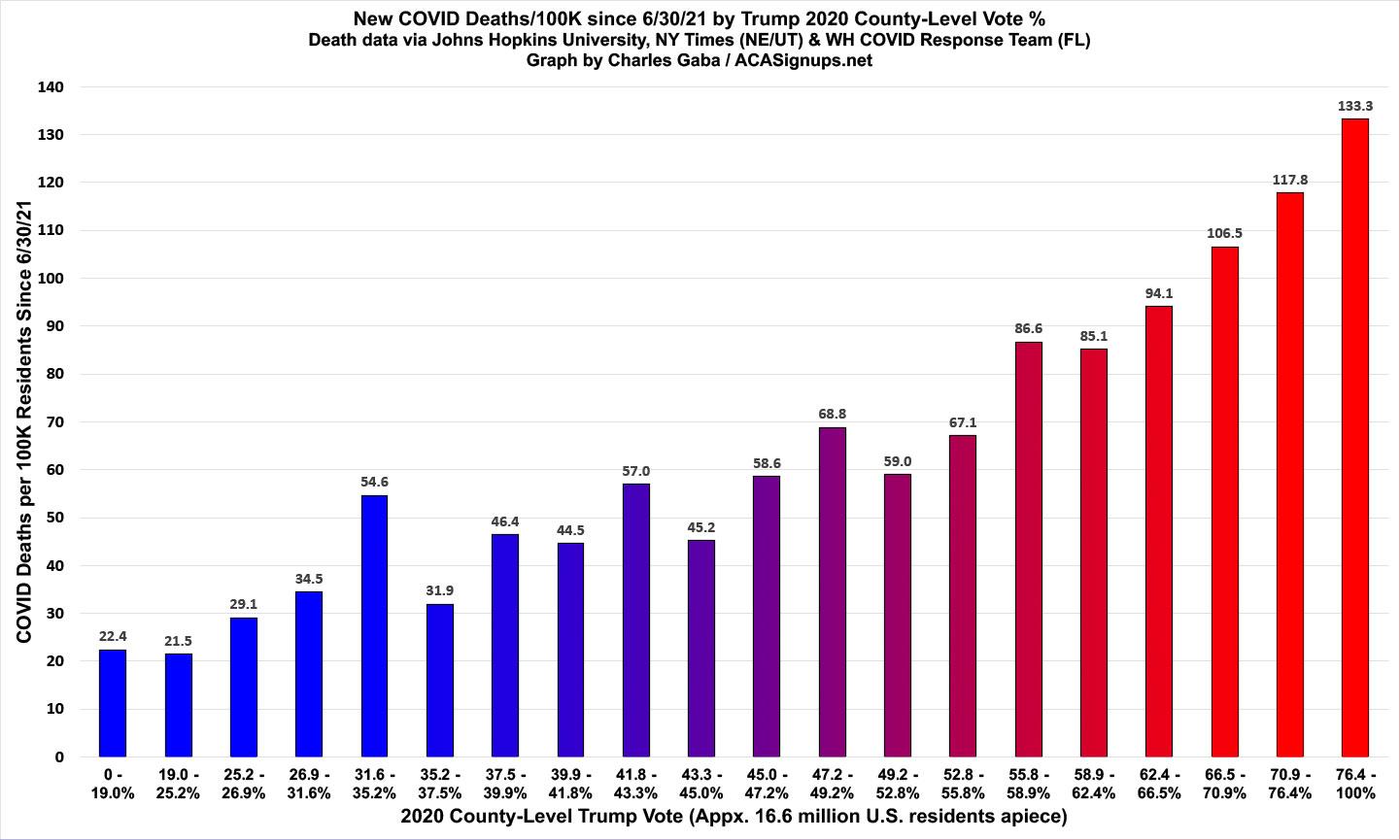 Here's the weekly look at the rate of COVID-19 cases & deaths at the county level since the end of June, broken out by partisan lean (i.e, what percent of the vote Donald Trump received in 2020).