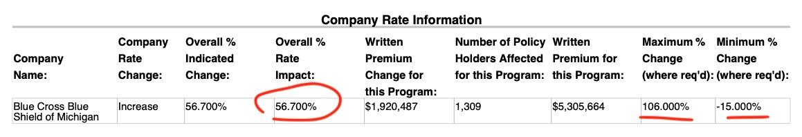 Update 8/25/22: FarmbellPSU in the comments was able to help me finally track down the 2022 BCBSM Student Health Plan (SHP) rate filing forms, and holy cats: It looks like there's only 740 enrollees total (across 257 households, or around 2.88 enrollees per household...which suggests a lot of middle-aged graduate students & their families, like ours).
