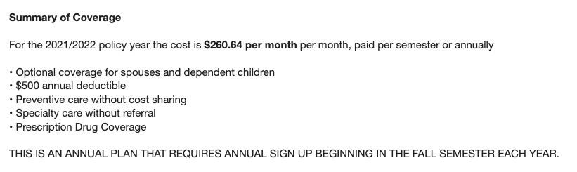 This could easily explain the dramatic spike, especially if they were expecting a high number of young undergrads this fall but ended up with a disproportionate number of older grad students instead. A handful of expensive enrollees, or a lot of enrollees ramping up utilization of services in the post-COVID world (yes, I know it's not over yet, but an awful lot of people seem to think it is) could easily skew the risk pool as demonstrated above.