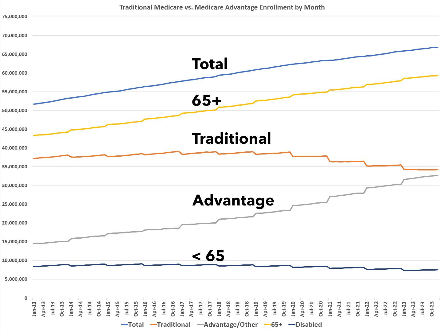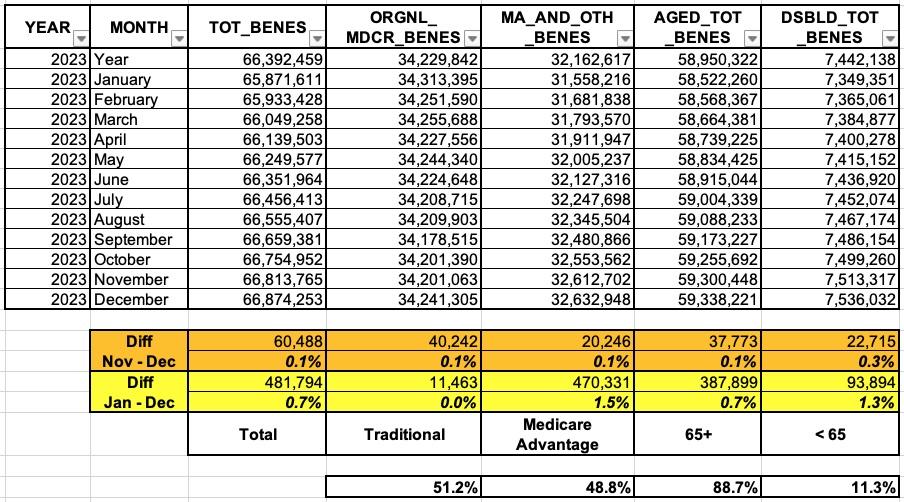 CMS: Medicare enrollment broke 66.8M in December; Medicare Advantage market share DROPS slightly!
