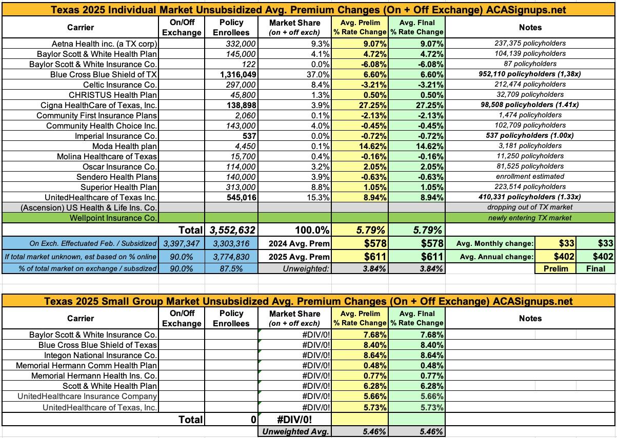 Oh yeah...here's the final 2025 rate changes for unsubsidized ACA policies for the remaining states, if anyone cares.