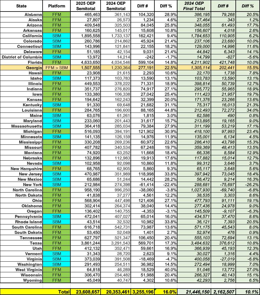 Not only is 2025 Open Enrollment up 16% over the same point last year, it's actually already up over 10% versus the final 2024 OEP total nationally...with a week left for folks to enroll!