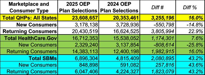As for the remainder of this year's OEP, around ~550,000 more people signed up in the final weeks of the 2024 OEP (after the dates in this report). Assuming this year's trend continues, that would translate into perhaps another 630,000 signing up this year.
