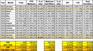 The Centers for Medicare & Medicaid Services just published updated enrollment data for Medicare, adding February 2025 to the data archive.