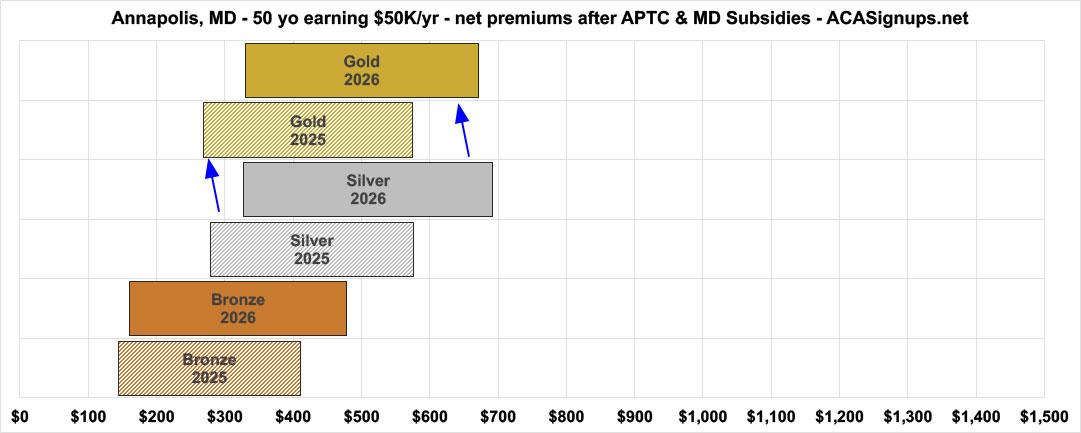 Maryland is another state which is continuing to implement Premium Alignment pricing. It's not super aggressive but is stronger than Colorado's...and like Colorado, Maryland has their own state-based subsidy program which is knocking an additional $73/month off the net premium.