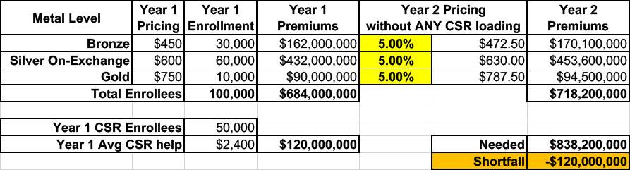 They assume that total enrollment and their CSR costs will be around the same (and in the same ratios) for Year 2. In other words, this assumes that all 100,000 current enrollees renew their existing policies for another year.