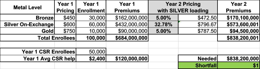 - The 5,000 people with unsubsidized silver plans will need to rationally decide to move to an off-exchange silver plan to avoid the impact of silver loading or choose a bronze or gold plan that meets their needs. This is the population that is negatively impacted by these rate increases.