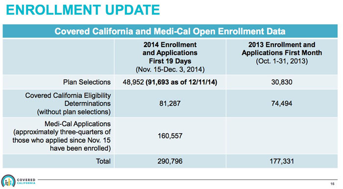 Covered California released those preliminary figures Nov. 20, when Executive Director Peter Lee revealed that 11,357 people signed up for private health plan coverage between the Nov. 15 beginning of this year's open enrollment period and Nov. 18.