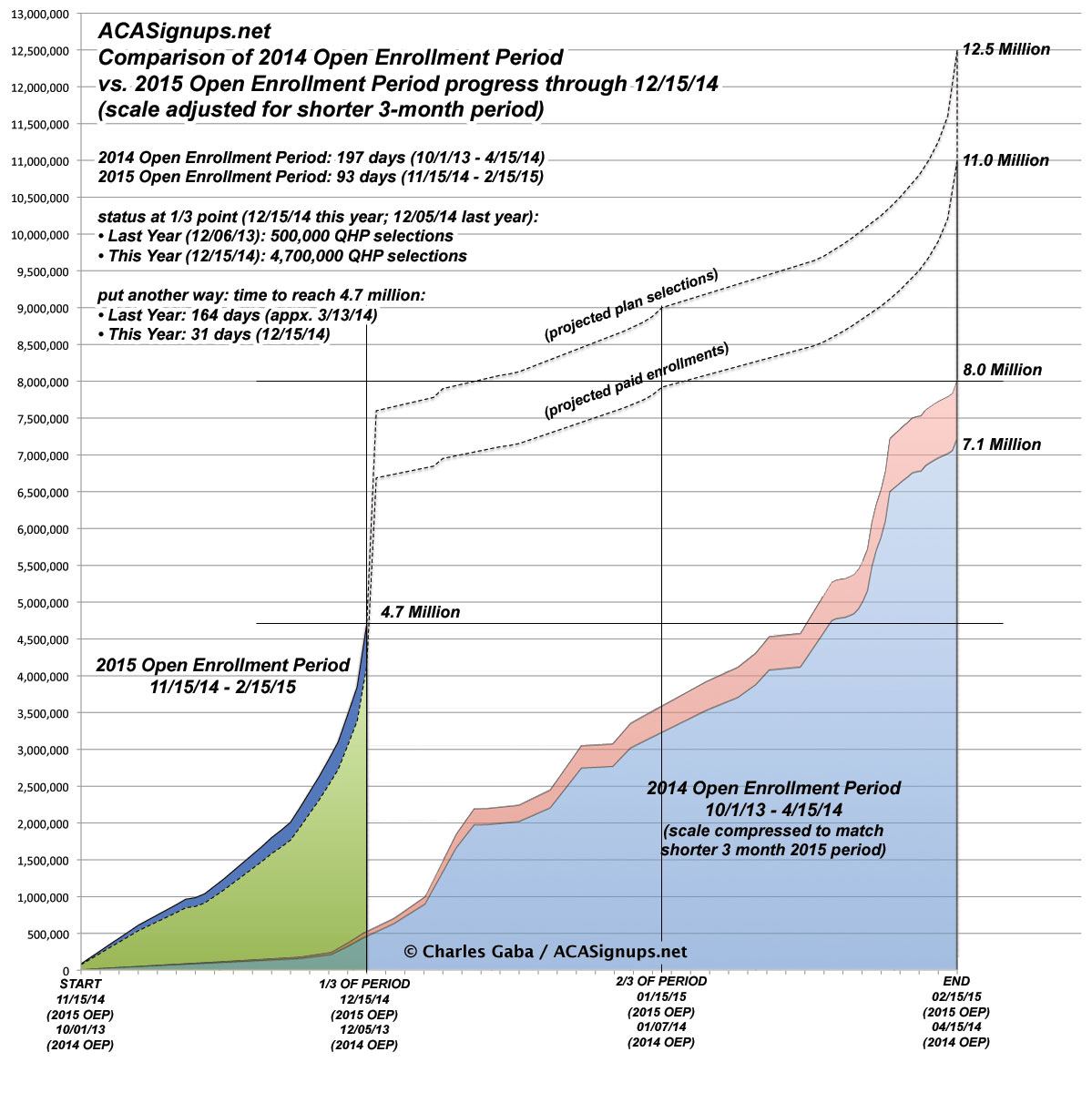 Put another way, at their current rate, MA is on track to enroll a minimum of 130,000 people for 2015...and that would be even without a December 15 or February 15 surge.