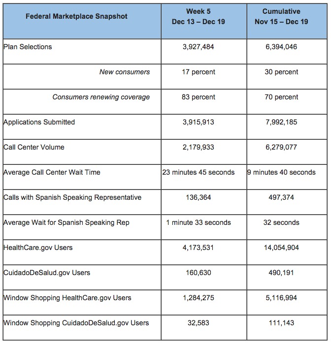 November 15th through December 15th (everything up through the enrollment deadline for January coverage in most states; this would be useful, but wouldn't include any autorenewals); if so, I'd expect around 3.52M QHPs via HC.gov and 4.70M QHPs total.