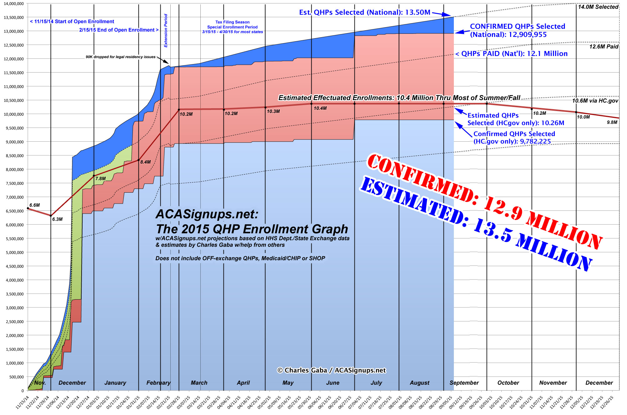 In 2014, there was a tremendous amount of focus placed on whether or not "Obamacare Enrollments" (specifically referring to private ACA exchange enrollments) would or wouldn't hit the seemingly all-powerful target of 7 million people. Hell, the original (and still primary) focus of this website was specifically to do live tracking of private ACA exchange enrollments across all 50 states (+DC).
