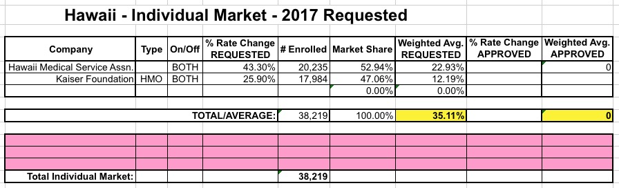 As I noted Monday, I believe August 1st was the deadline for every state to submit their 2017 rate filings, meaning that the 14 states missing from my Requested Rate Hike Project are finally available to be plugged into the spreadsheet. I'll also be going back through the other states I've been tracking since as early as April to see which ones require updates due to carriers dropping out, joining in or resubmitting their rate requests.