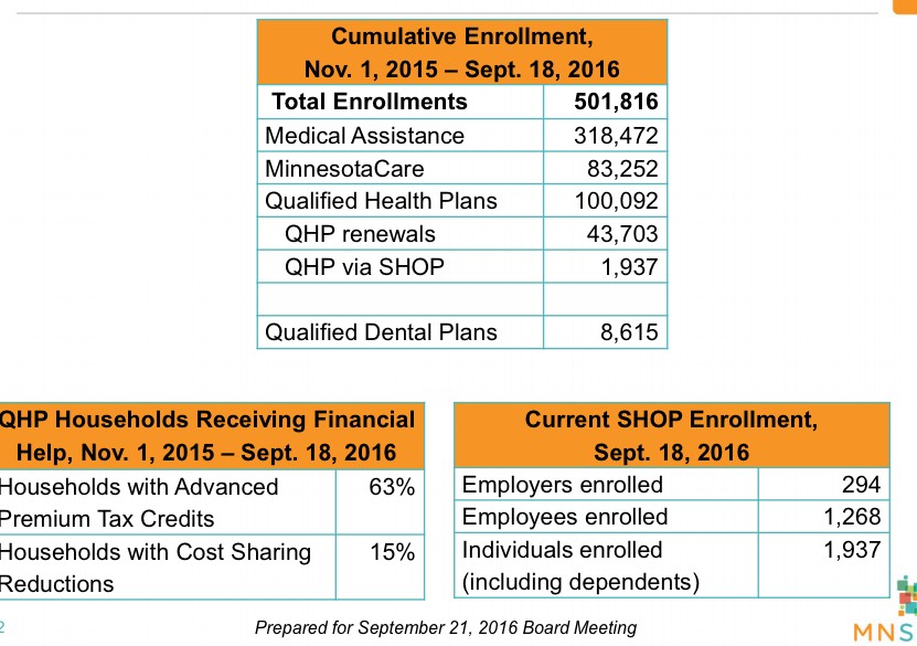 I assumed a similar pattern to last year, with roughly 15% net attrition as of the end of June, which would have resulted in roughly 10.8 million people having effectuated exchange policies as of 6/30/16. Instead, they say it was around 10.5 million. Based on this new data, I'm revising my net attrition estimates for the rest of the year to perhaps 9.8 million as of the end of September. If so, this would result in ending 2016 with around 9.2 million people enrolled in effectuated exchange policies, for a 2nd-half monthly average of around 9.9 million and a full-year monthly average of around 10.1 million.
